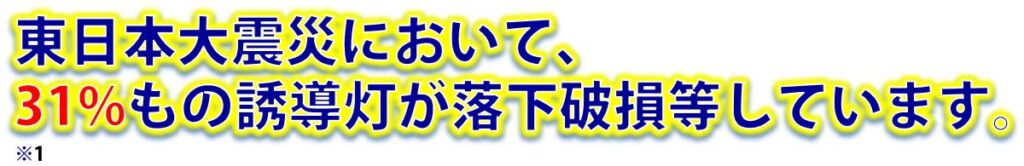 - 大規模地震では建物内部の損壊や停電が発生しています。誘導灯は避難経路を示すだけでなく暗闇の中で避難する人々にとっての最後の灯りとなる大切なものです。