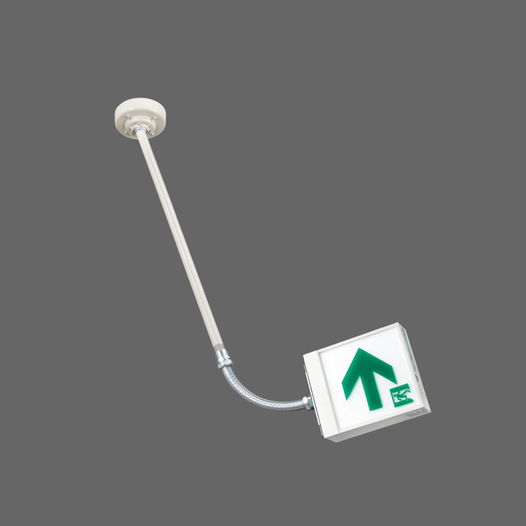 - 東京消防庁消防科学研究所による実験からも「天井の揺れが誘導灯に直接加わらないような構造にする必要がある」と言われています。(※3)